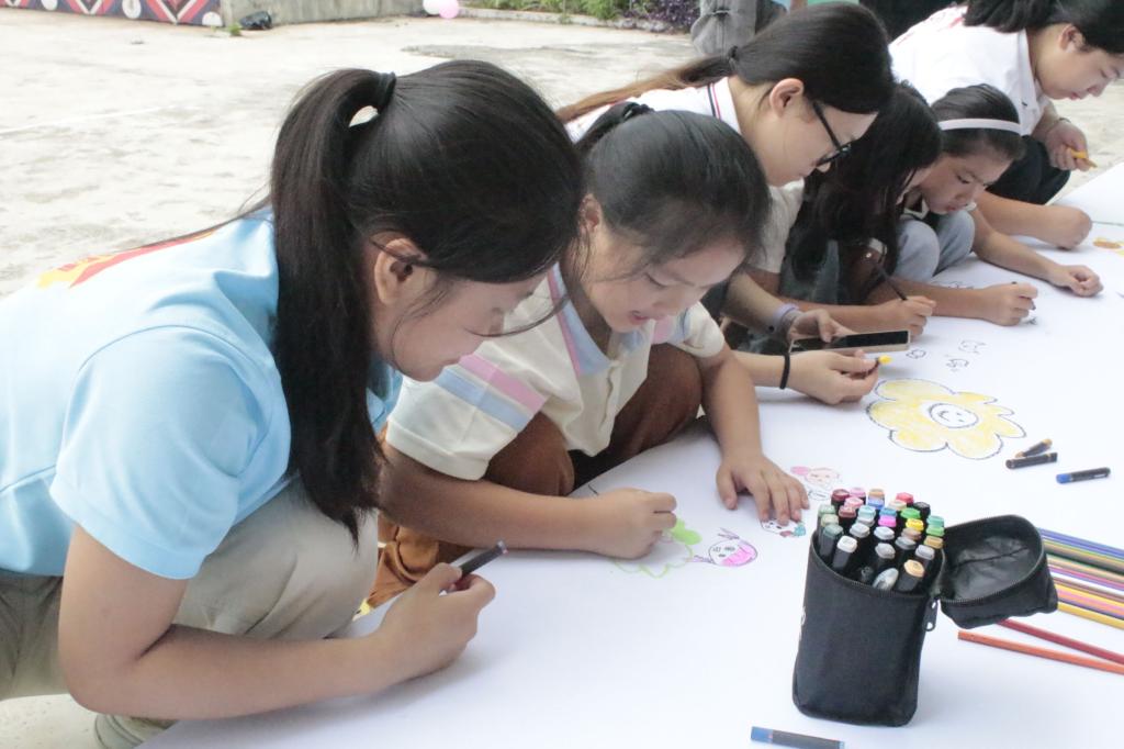 文化传承润童心,民族团结谱新篇。文化传承是乡村振兴的灵魂工程,实践团开设“非遗小课堂”,耐心带领当地儿童制作壮族麽乜与香囊,深入浅出地讲解传统手工艺背后的深厚文化内涵;精心组织“七彩假期”活动,以创意绘画、安全教育、科学实验等丰富多样的形式,充分激发儿童的学习兴趣。此外,队员们还与村民携手联办民族团结文艺晚会,民族歌舞活力四射、急救情景剧引人入胜,各类节目轮番上演,现场欢声笑语不断,气氛热烈非凡。这些活动不仅让传统文化在孩子们心中生根发芽,更架起了民族团结的桥梁,为乡村振兴注入深厚文化活力。