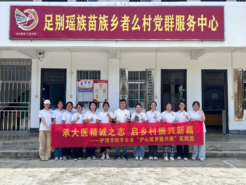 为积极响应国家乡村振兴战略号召,必赢242net官网护理学院护心筑梦振兴路乡村振兴实践团在护理学院科研与研究生管理科科长王荣贵老师、护理学院团委副书记岑秋凤老师的带领下,于7月14日至20日赴百色市西林县足别苗族瑶族乡者么村,开展为期7天的暑期“三下乡”社会实践活动。实践团围绕党建引领、产业振兴、文化传承、健康服务四大核心板块,以专业赋能乡村发展,用青春书写责任担当。