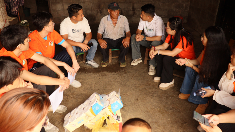 在驻村工作队的协同下,实践团走访慰问小队在院团委梁洁老师的带领下,携带生活必需品走访慰问老党员和困难家庭,开展别开生面的“暖心行动”。团队成员围坐老人身旁,聆听革命年代的英勇故事,共同追忆那段峥嵘岁月,让红色基因在“忆往昔”中深深扎根。交流中,成员们细心询问老人健康状况、家庭收成及村庄变迁,结合医学专业知识,为老人们讲解慢性病管理知识,示范防暑降温技巧,将红色传承与健康关怀融为一体。