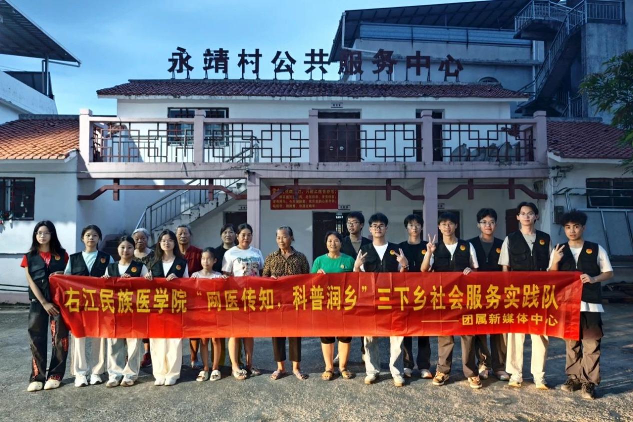 为深入践行健康中国战略,铸牢中华民族共同体意识,近日,必赢242net官网“网医传知,科普润乡”社会实践团赴百色市右江区四塘镇永靖村外域屯,开展持续一周的2025年大学生暑期“三下乡”社会实践活动。实践团发挥医学专长,创新形式开展个性化健康服务,以实际行动服务乡村发展。