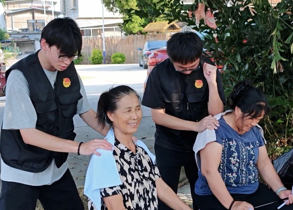 实践团成员为群众进行手法按摩。