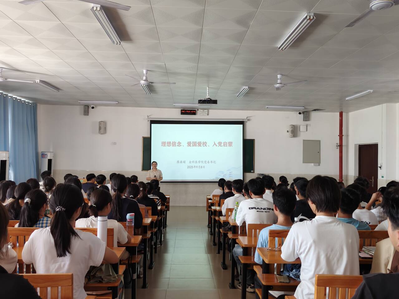 学院党委书记廖满媚围绕理想信念、家国情怀、爱校荣校、入党启蒙四大主题,通过生动案例与深情讲述,引导新生树立爱校荣校意识,主动将个人理想融入国家发展大局,并系统讲解了党的基本知识、入党流程与要求,鼓励同学们积极向党组织靠拢。