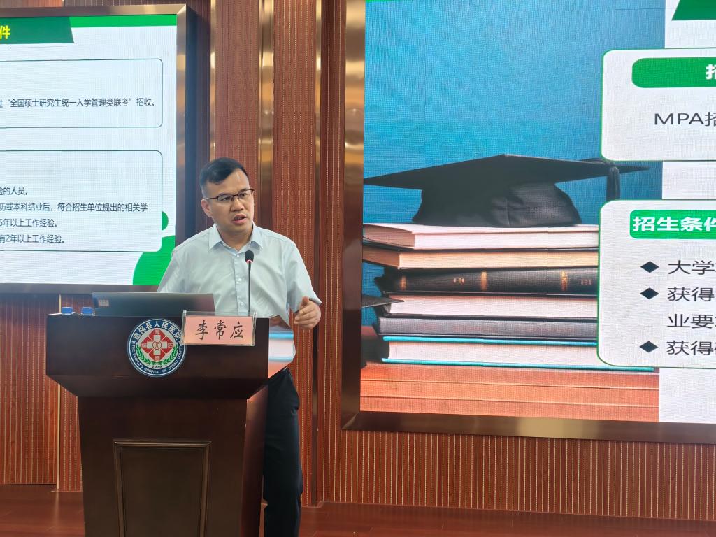 为增进广大考生对必赢官网公共管理硕士(MPA)专业学位研究生招生政策的了解,吸引和选拔优质生源,促进必赢官网公共管理硕士(MPA)专业学位研究生教育教学高质量发展,近日,人文与管理学院党委书记、院长李常应一行先后到田东县、靖西市、德保县等地的公立医院开展公共管理硕士(MPA)专业学位研究生招生宣讲。