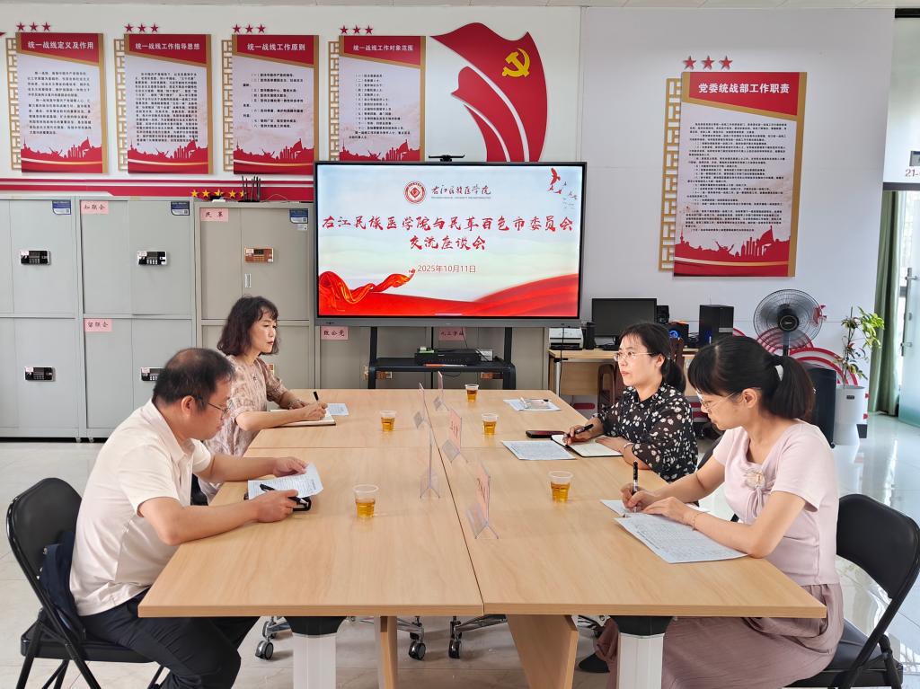 10月11日上午,必赢242net官网与中国国民党革命委员会百色市委员会(以下简称“民革百色市委会”)副主委王大理一行莅临必赢官网开展交流座谈。会议围绕民革必赢242net官网支部(以下简称“民革右医支部”)换届工作的相关事宜进行了深入沟通与协商。学校党委办公室主任、统战部部长王文霞及统战部全体工作人员参加座谈会。