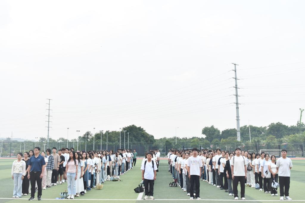 清晨,全体师生整齐列队,肃立于国旗台前。7时整,升旗仪式正式开始。护旗手步伐铿锵、身姿挺拔,庄严护送五星红旗至旗台。在雄壮的《义勇军进行曲》中,鲜艳的五星红旗冉冉升起,全体师生行注目礼,心中激荡着对祖国的热爱与对民族复兴的坚定信念。