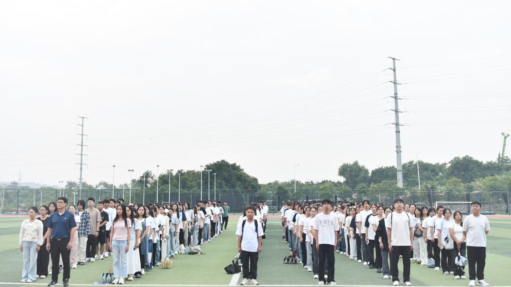 升旗礼毕,全体师生齐声高唱《我和我的祖国》,“我和我的祖国,一刻也不能分割……”的悠扬旋律响彻操场。他们用歌声抒发爱国情怀,展现新时代青年的责任担当。