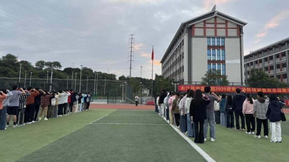 最后,主持人带领全体师生宣读《医学生誓言》,让在场的每一位师生都深受触动。他们精神饱满,语气铿锵,掷地有声的誓言彰显了右医学子投身医疗卫生事业、守护人民健康的坚定决心,展现出新时代青年挺膺担当的精神风貌。