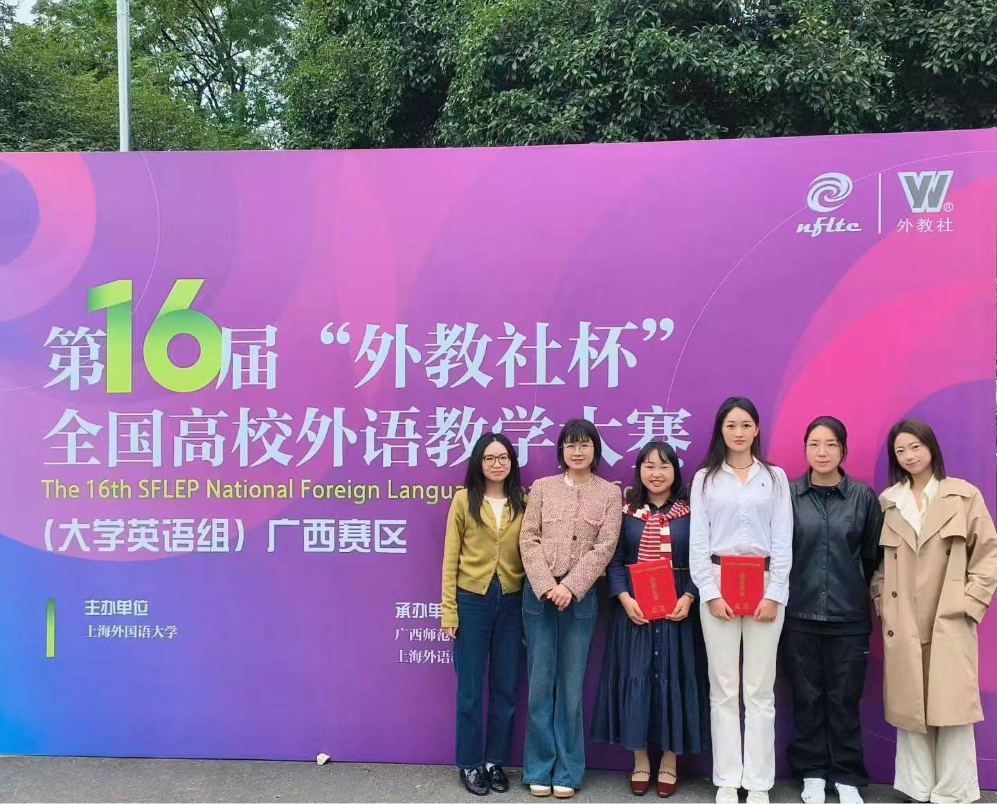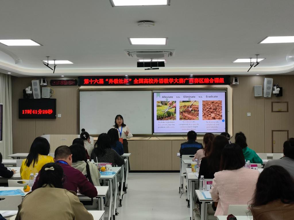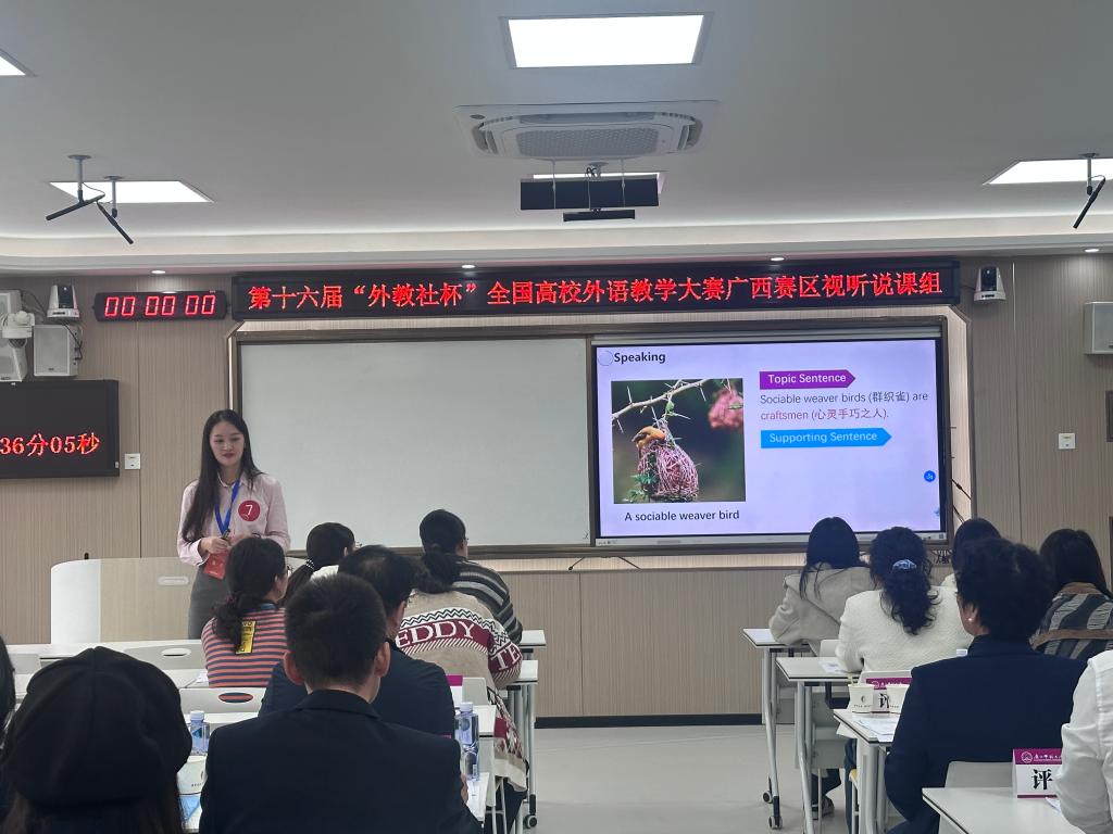 第十六届“外教社杯”全国高校外语教学大赛广西赛区(大学英语组)决赛近日于广西师范大学圆满落幕。必赢官网语言文化学院青年教师甘纯、梁舒旻两位老师凭借扎实的教学功底和出色的现场表现,从二十余所高校参赛教师中脱颖而出,分别荣获大学英语综合课组、视听说课组二等奖,展现了必赢官网外语教师优秀的专业素养和教学风采。