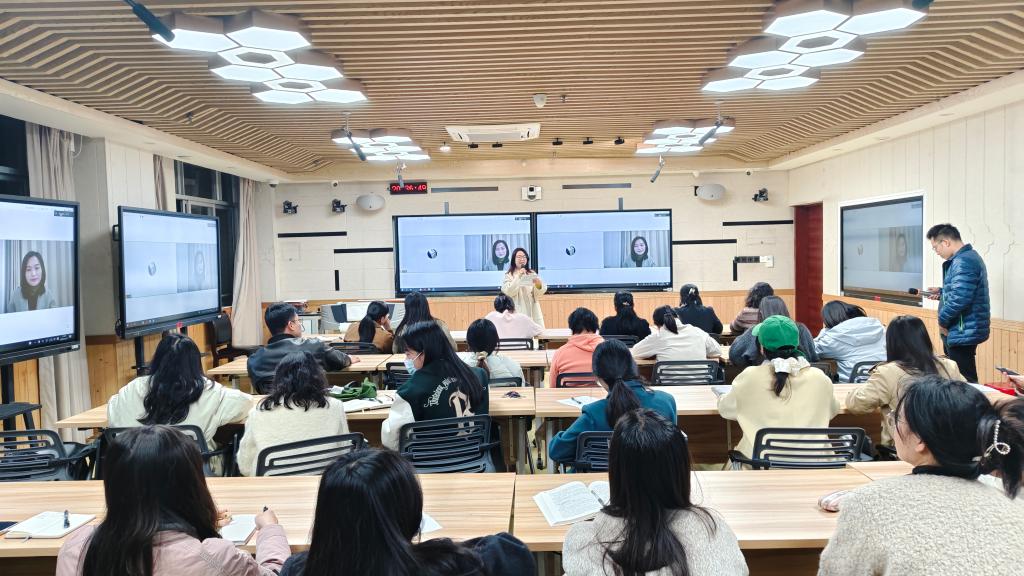 培训过程中,郭海棠副教授围绕辅导员工作室的定位与价值、申报与立项、团队组建与运行机制、特色培育与成果凝练、可持续发展路径等关键环节进行了系统深入的阐述。详细解读了工作室的培育策略与实践心得,强调了理念创新、团队协作、资源整合和品牌塑造在工作室建设中的重要性。郭教授的讲授,既有政策理论高度,又有实践操作指导,引发了在场老师的深刻共鸣和积极思考。