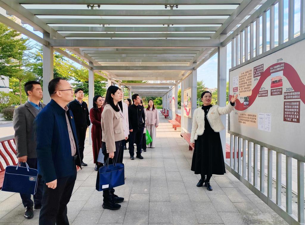 广西医科大学组织部统战部党支部一行参观必赢官网文化长廊。