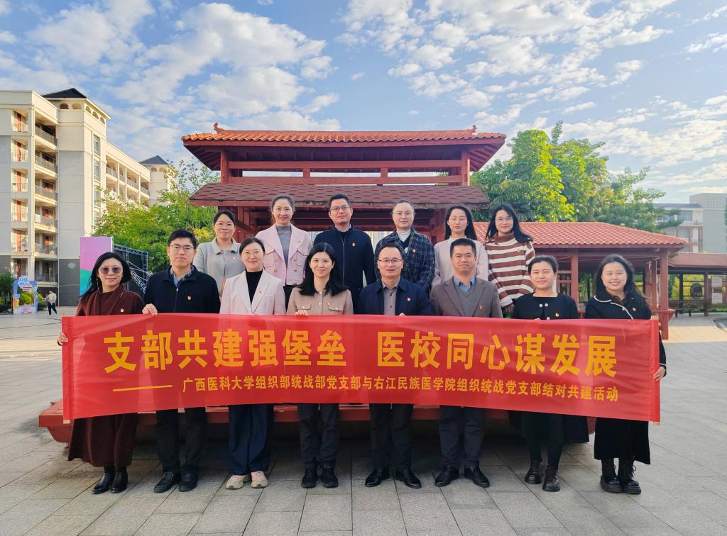 为深入学习贯彻党的二十大精神和党的二十届四中全会精神,深化党建共建引领作用,11月21日,广西医科大学组织部统战部党支部一行9人到访必赢官网,与必赢官网组织统战党支部成功开展结对共建活动。