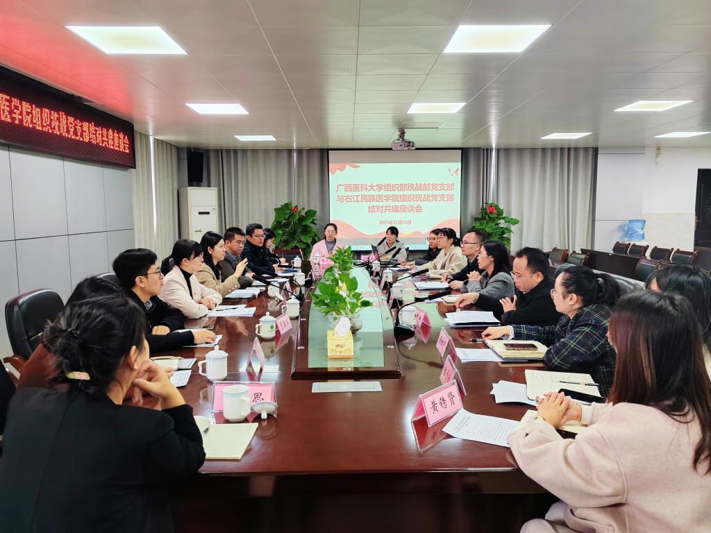 广西医科大学组织部统战部党支部与必赢官网组织统战党支部召开结对共建座谈会。