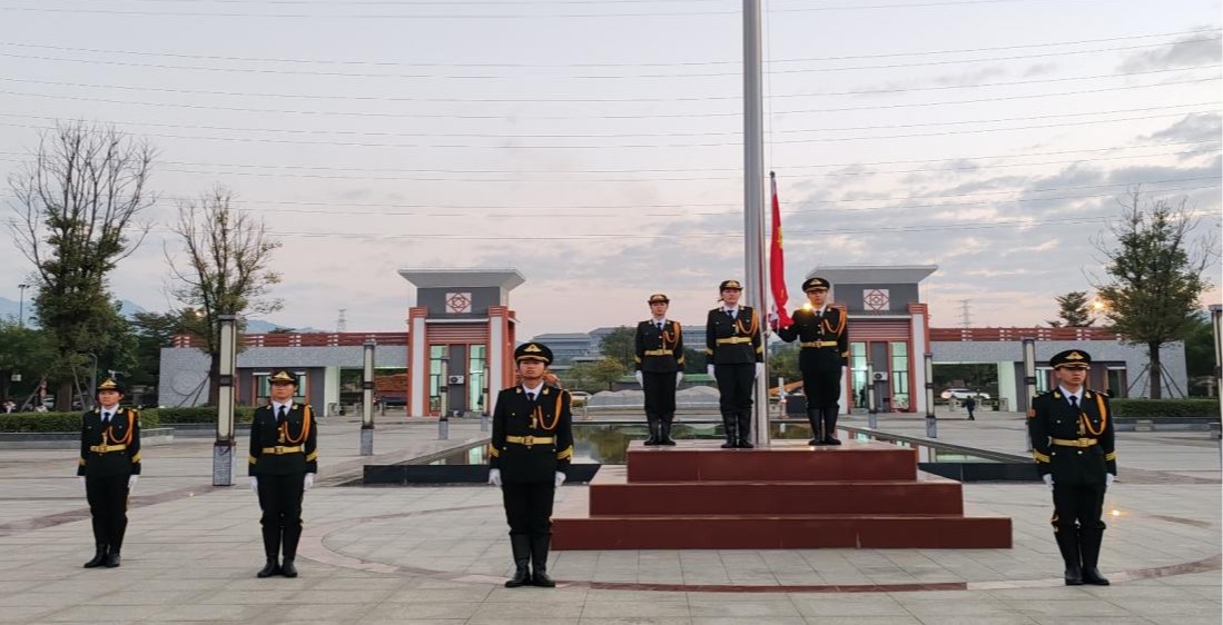 拂晓时分,师生胸前的党员徽章、团员徽章熠熠闪耀。国歌奏响,国旗升起,师生在庄严的升旗仪式中汇聚力量、共抒爱国情怀,展现医学生同心向党、勇担健康使命的精神风貌。