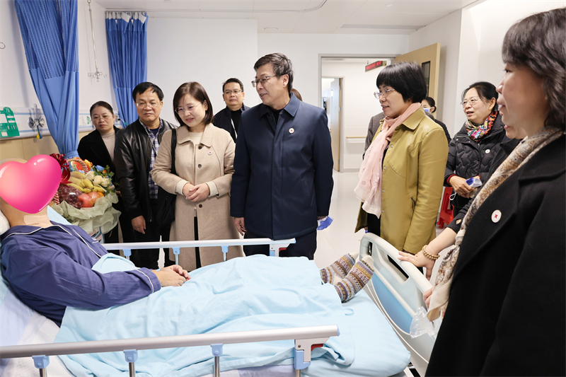 调研期间,王雷一行深入康复医学科、血液内科等病房,与患者亲切交流,了解病情与生活需求,让患者及家属深切感受到红十字会的人道主义温情与医院的人文关怀。