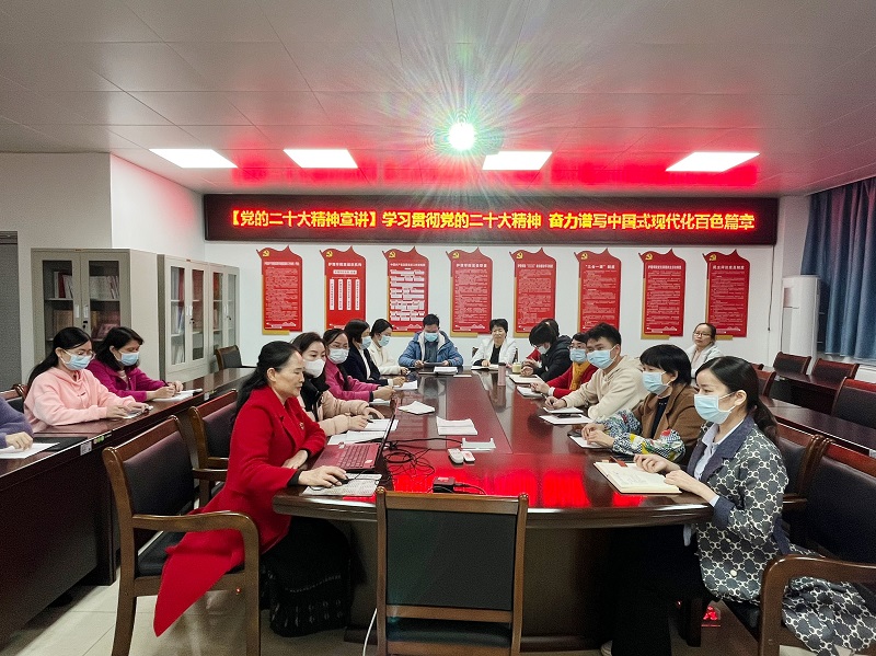 接着黄书记从深刻领会党的二十大主题、深刻领会过去五年的工作和新时代十年的伟大变革、深刻领会开辟马克思主义中国化新时代新境界、深刻领会以中国式现代化全面推进中华民族伟大复兴的使命任务、深刻领会全面建设社会主义现代化国家的战略部署、深刻领会全面建设社会主义现代化国家的坚强领导、深刻领会习近平总书记对广西提出的“五个更大”重要要求等七个方面,带领全体教职工深入学习领会党的二十大精神。期间,黄芳艳书记用一张张百色老区变化的照片展示党的十八大以来伟大成就和百色撤地设市辉煌二十年的深刻变革,由浅入深地讲解了习近平总书记对广西提出的“五个更大”的重要要求。
