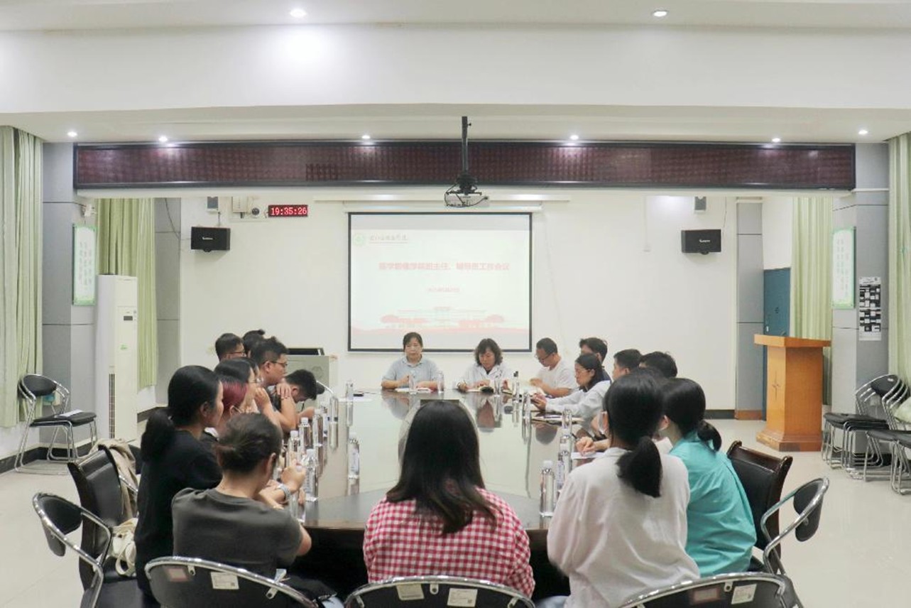 为全面总结近期学生工作成效,精准部署下一阶段重点任务,深入剖析学情、学业预警、心理健康、就业服务等议题,为学院学生管理工作精准把脉、定向领航,5月29日晚,医学影像学院于百城校区4-101招就处会议室召开了班主任辅导员工作会暨学风建设工作推进会。学院党委副书记黄春苗、学生科科长及全体班主任辅导员参会。