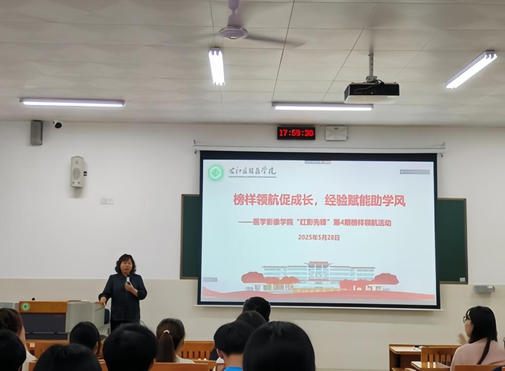 活动由医学影像学院党委副书记黄春苗和学生科科长卢小新在两个教室主持。黄春苗向同学们着重介绍了华黎城、谢荣锦、雷新宇、周翔宇等四位优秀毕业生的基本情况,卢小新阐述了本次活动的意义,指出近期同学们在学习中暴露出的问题与不足,强调此次交流会旨在搭建经验交流平台,助力同学们汲取宝贵经验,为未来职业生涯筑牢根基,期望能借此激发同学们的思考并促使其付诸行动。